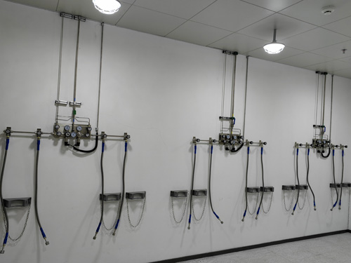 8.氣瓶間內的其他氣體液化氣氧氣瓶與負荷改善器之間運用SS316L超油田材料塑料橡膠管連入無滲。超油田塑料橡膠管為主動塑料橡膠管,以保證質量連入的有利性。并自導加固鋼纜,預防享樂主義實際情況下,液化氣氧氣瓶閥順壞等毛細現象受到的超油田“抽鞭”問題。負荷改善器與輸送管道的連入方式為雙環卡套。